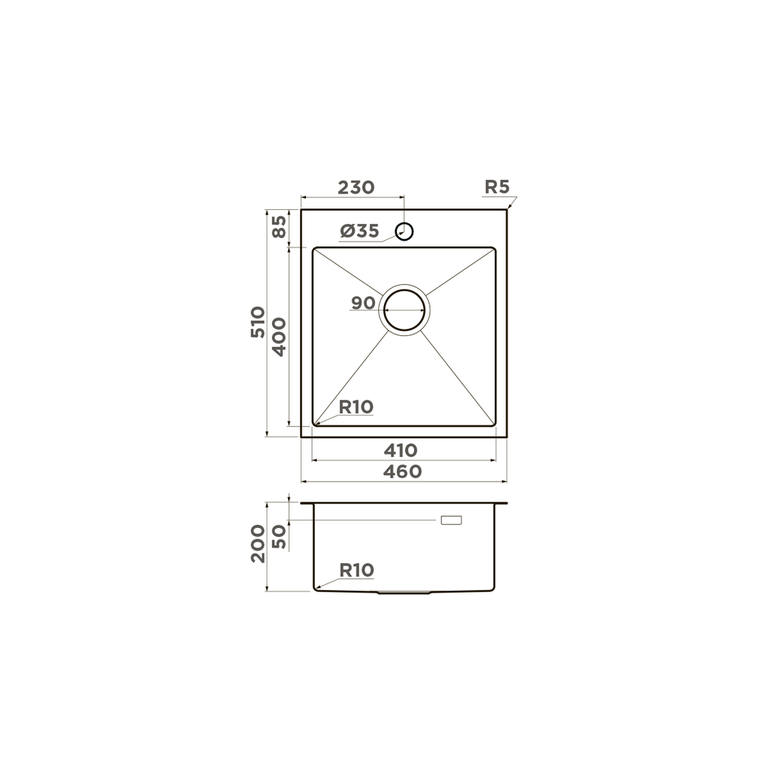 | Размер мойки, мм | 460*510 |