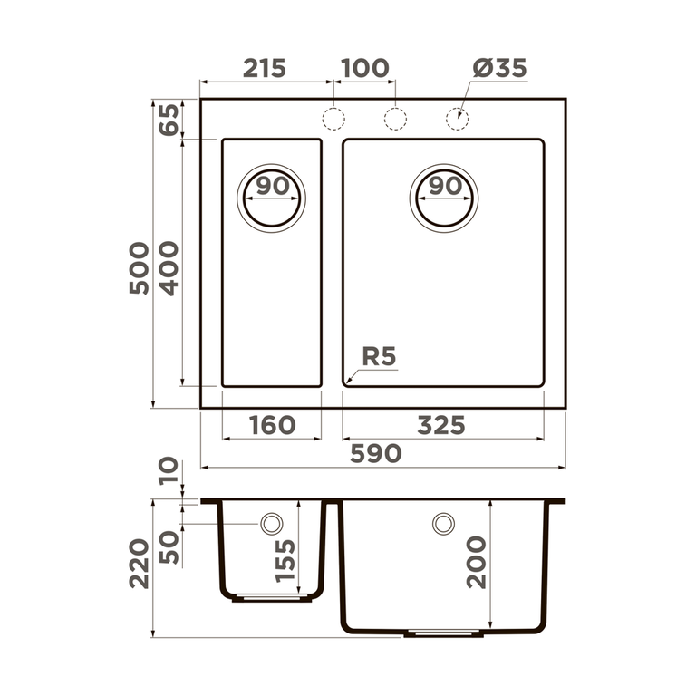 | Глубина чаши, мм | 155 / 200 |