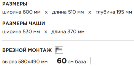 | Размер мойки, мм | 600*510 |