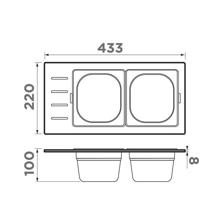 Особенности: 433x220x65 мм