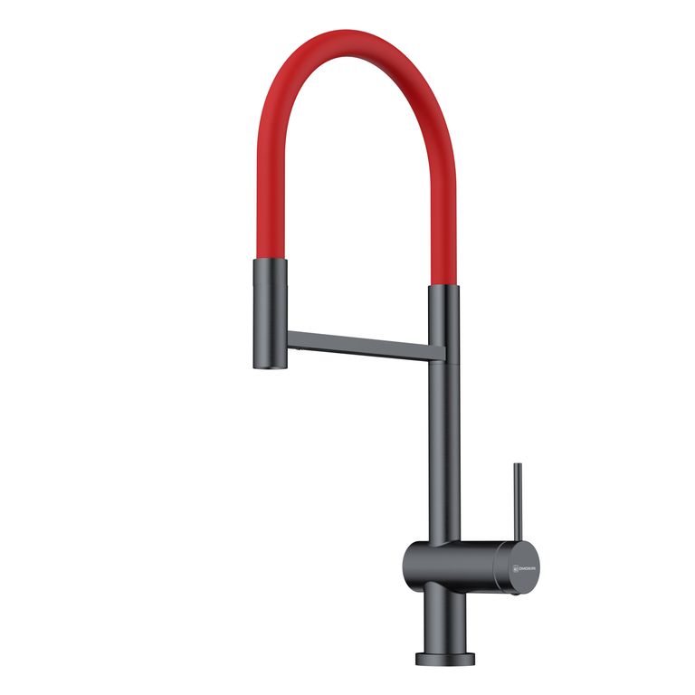 Вороненая сталь/Красный гибкий шланг |