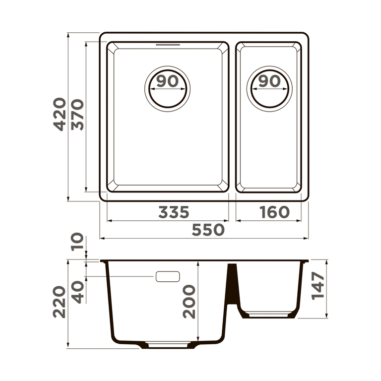 | Размер мойки, мм | 550*420 |