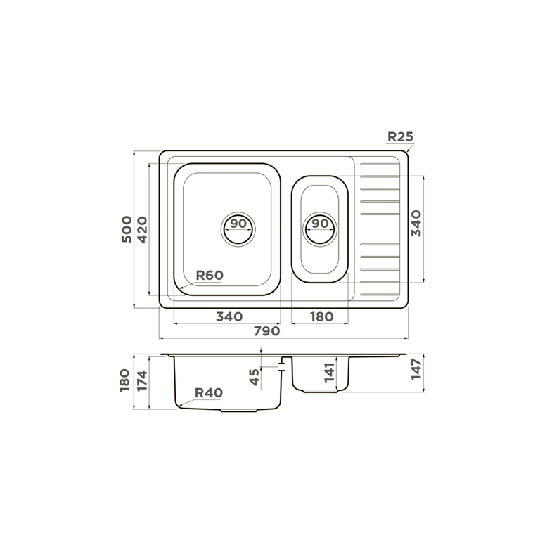 | Размер мойки, мм | 790*500 |