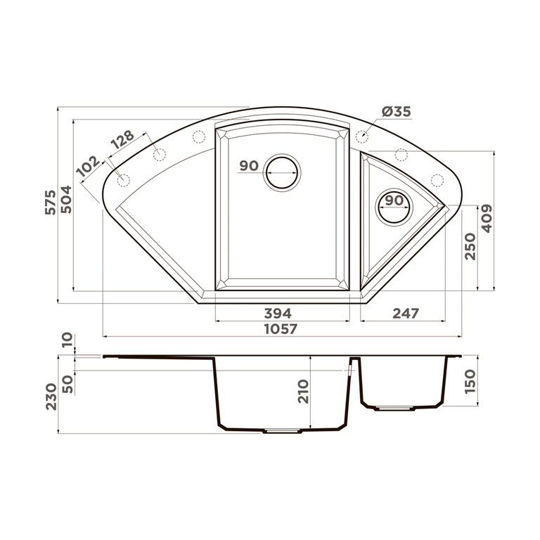 | Размер мойки, мм | 1057*575 |