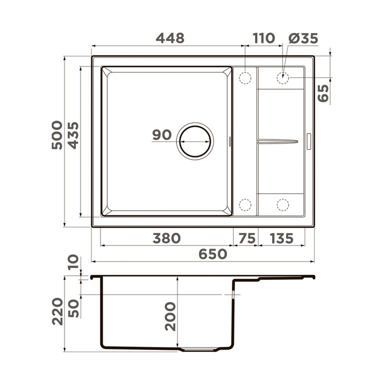 | Размер мойки, мм | 650*500 |