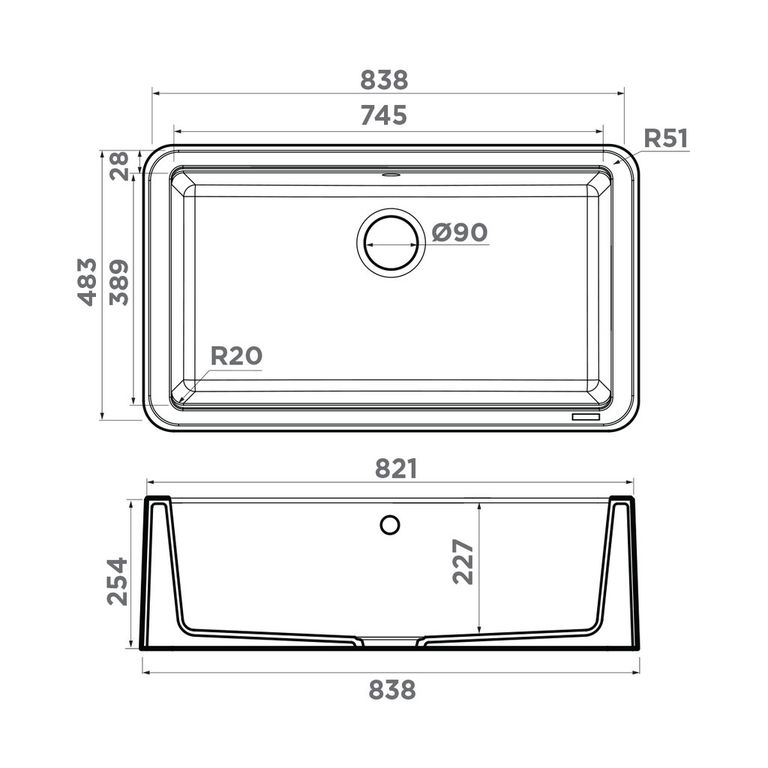 | Размер мойки, мм | 838*483 |