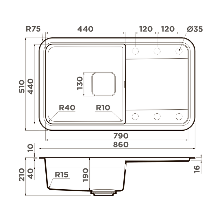 | Размер мойки, мм | 860*510 |