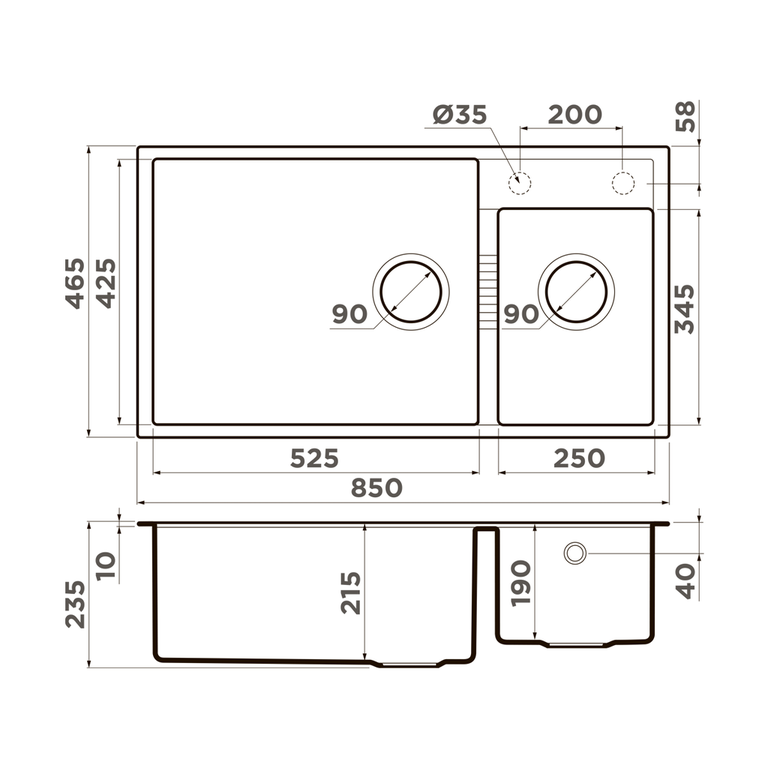 | Глубина чаши, мм | 215/190 |