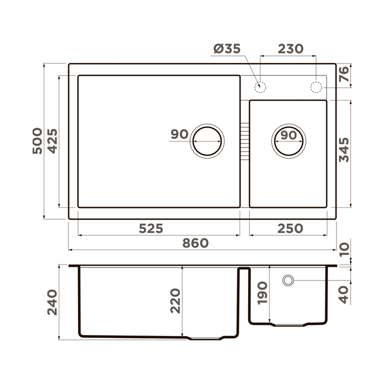 | Размер мойки, мм | 860*500 |