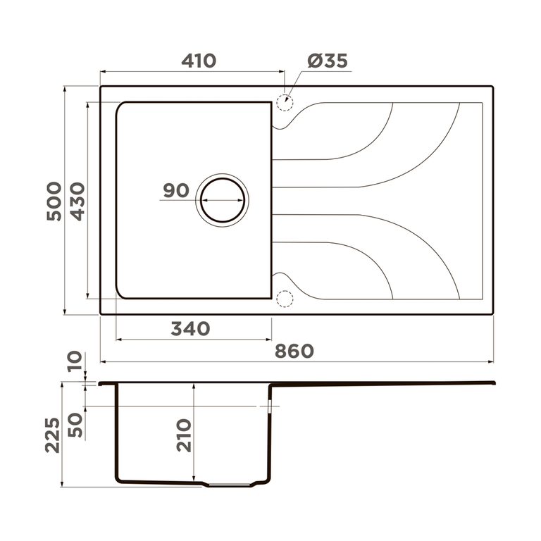 | Размер мойки, мм | 860*500 |
